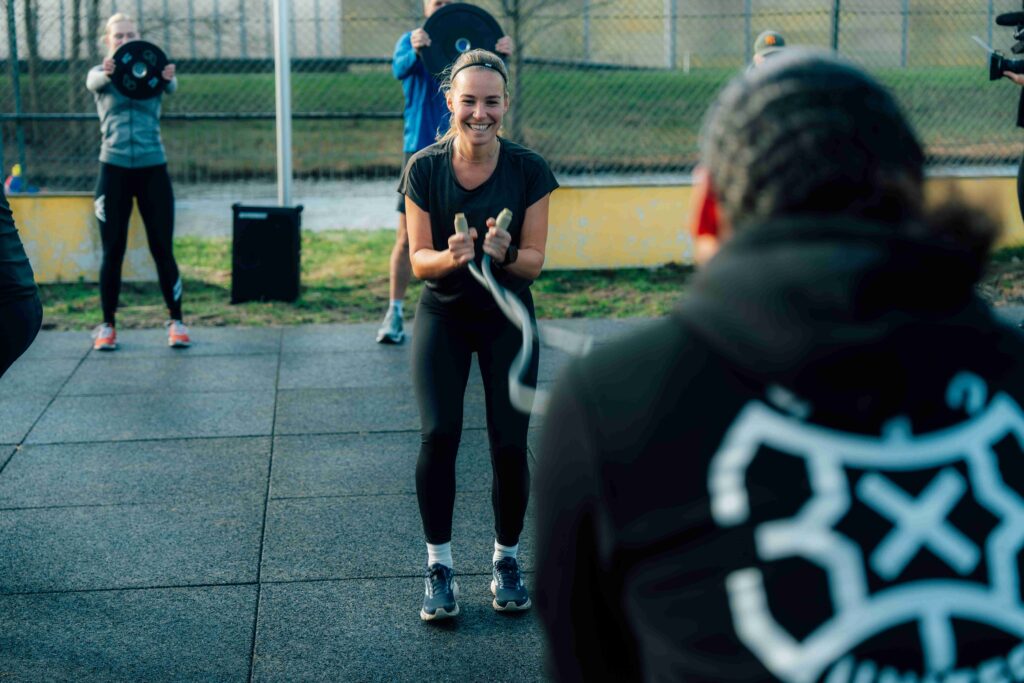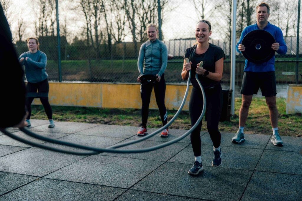 Met HIIT doe je uiteenlopende oefeningen met verschillende attributen. In een TRX hangen, banden omver gooien en het verplaatsen en tillen van gewichten. Je klimt, springt en rent. Dit zijn enkele voorbeelden van hoe HIIT in Hilversum eruit ziet.